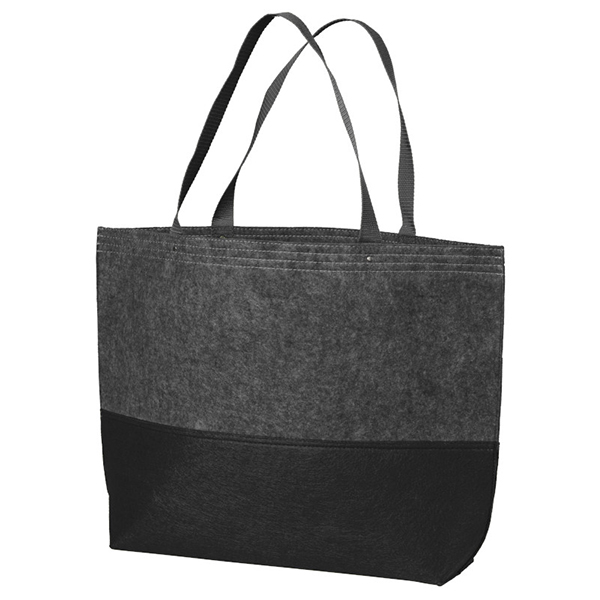 Constructed from easy-to-decorate felt, this sturdy colorblock tote has riveted web handles. Available in two sizes, it’s a budget-friendly way to carry almost anything in style.